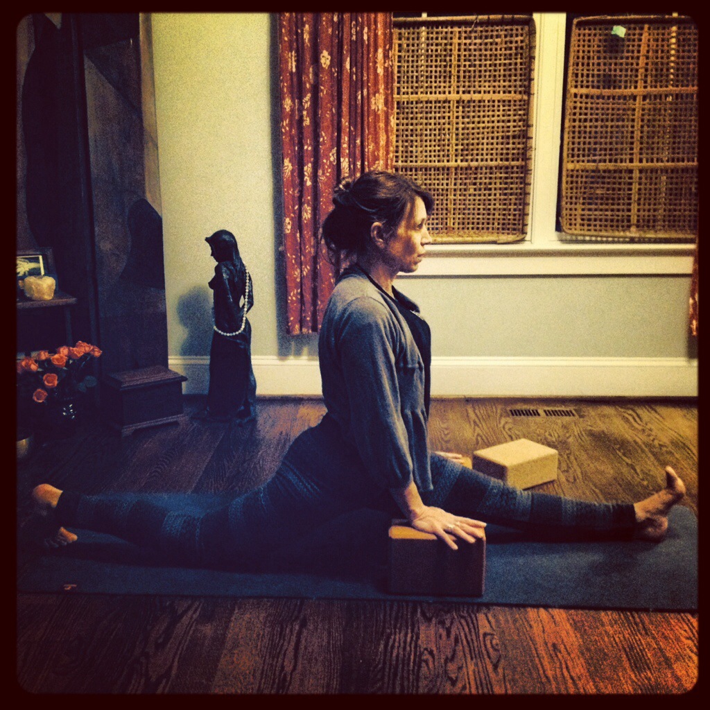 Hanumanasana is part of my challenge. Baseline for one side today pictured. Progress to be made. And this is my better side.