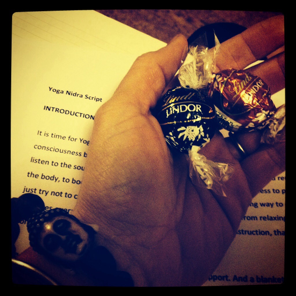 Seasonal offerings for students in my classes this week. ‘Tis the season when many can use a little extra love and sweetness. For the many that can’t come, there are ways to get your yoga nidra at home, many resources online, some free, some for money. Try it. Give yourself some seasonal calm. And a little chocolate too.