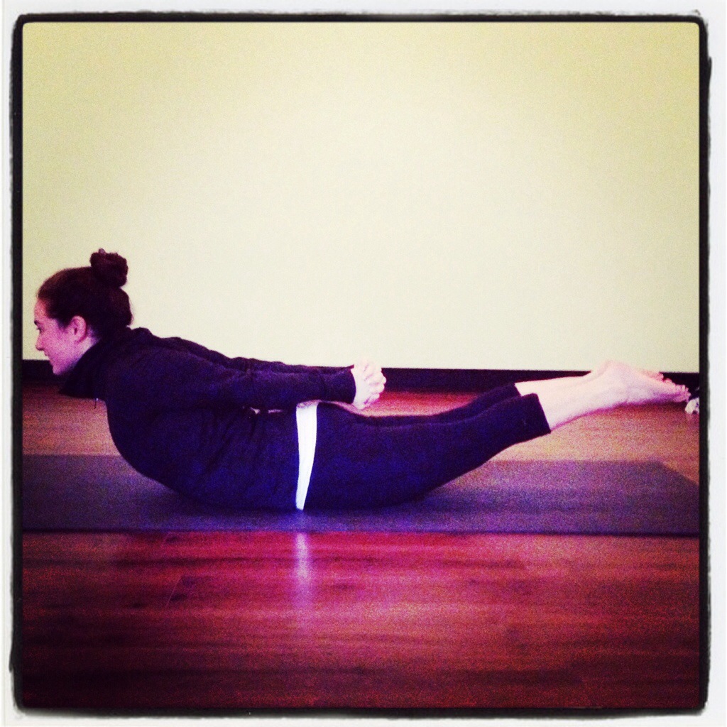 Thrifty Thursday. Borrowing from a friend, colleague, and boss lady. Her beautiful salabasana, participating with #backbendmadness2014. Let’s face it. I am sooooo sick of pictures of me, even with the sweet Charlie. So, today featuring the beautiful @Arlet, owner of the great @extendyoga. I ❤️ her. I also ❤️ belly down backbends. They are challenging for sure. But great for you and your spine. #Salabasana is a good one. You can try it by lying face down and lifting your straight legs up and hugging them toward each other, with forehead on ground, hands resting by sides, palms facing down. Or stay there and also lift chest and head, flying arms behind you, unlaced fingers, palms facing down or inwards. Or try variation pictured here, interlacing fingers, hugging base of hands toward each other (eg, avoiding right angle wrists and forearms) and drawing the head of your arm bones away from your ears. In either lifted variation, keep head in line with spine, gazing just slightly forward, long neck, no wrinkles in the skin at the back of your neck. Always lengthening tail bone toward floor. And, whenever hands or feet are in the air, they are active, spreading toes and fingers (unless interlaced).