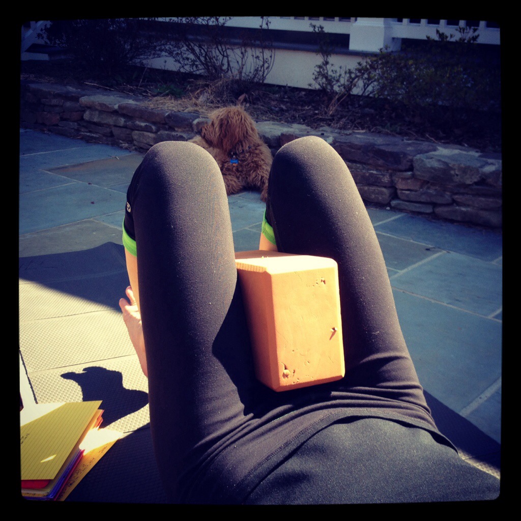 Sunshine almost always makes me happy. Even with this core connecting (euphemism for crunching) block party. (And yes, those are Charlie teeth marks on the block. And/or cat Murphy’s. Our pets love on the blocks.)