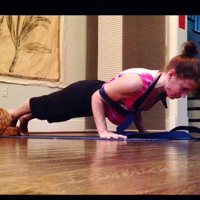 Chaturanga dandasana. With a strap! Try it. It’s like a hammock of alignment and support. Day 3. #independencearmy