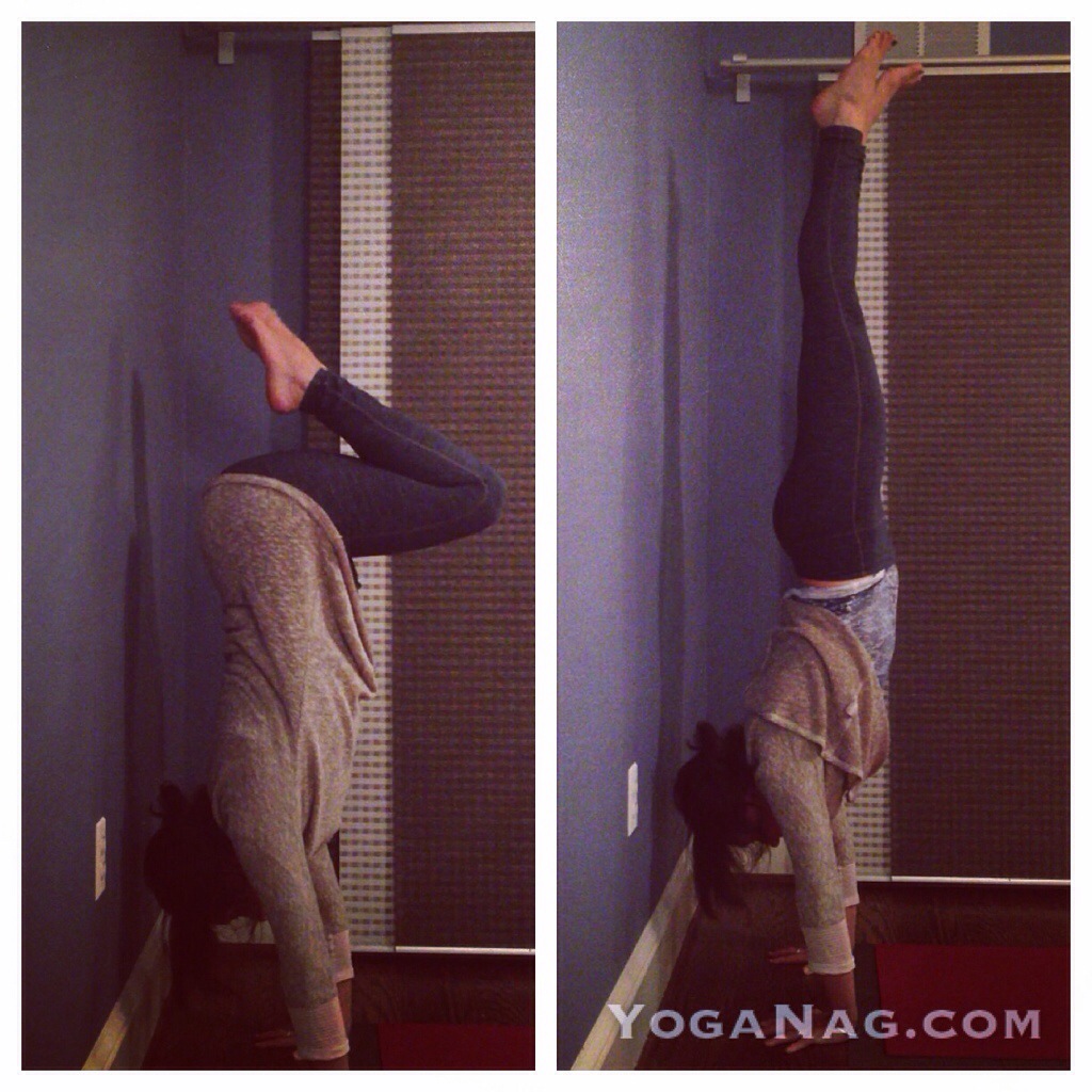 Another day. Another handstand approach. Mixing it up. Jumping up to tuck position. Get steady. Straighten legs. Together. About 1 out of 15 maybe I get. Without hitting the wall in tuck or hdndstand. Try it. Especially if you have tight hamstrings and hips, with strong arms/shoulders