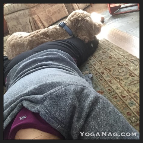 Monday morning warrior. Grounding. Serotonin-increasing. Cortisol-lowering. Yes, I will take this start to my week. Thanks for the extra grounding assist, Charlie bear. What about you? What’s your yoga plan?