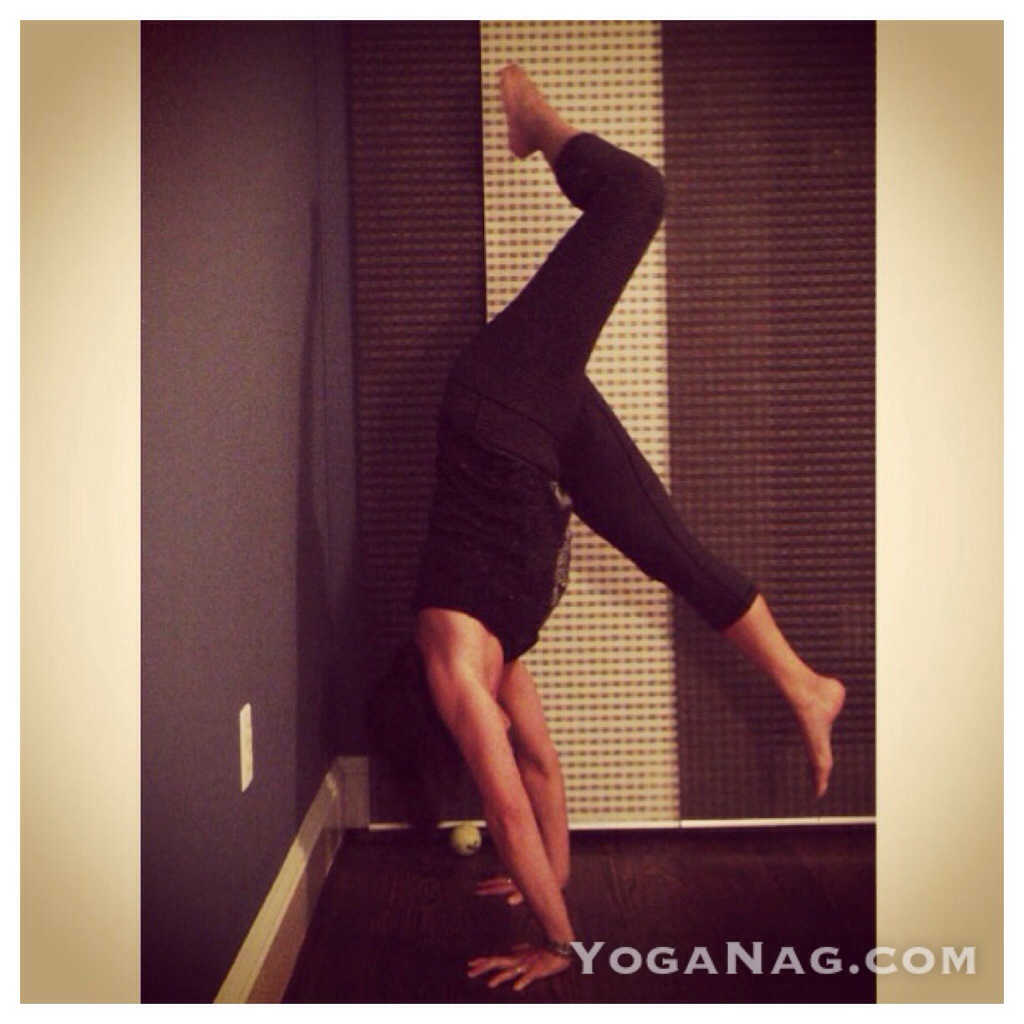 Trying to slow down the handstand descent. VIDEO at http://www.YogaNag.com These seemed epic when I was doing it. Not so much when reviewing the video. More practice.