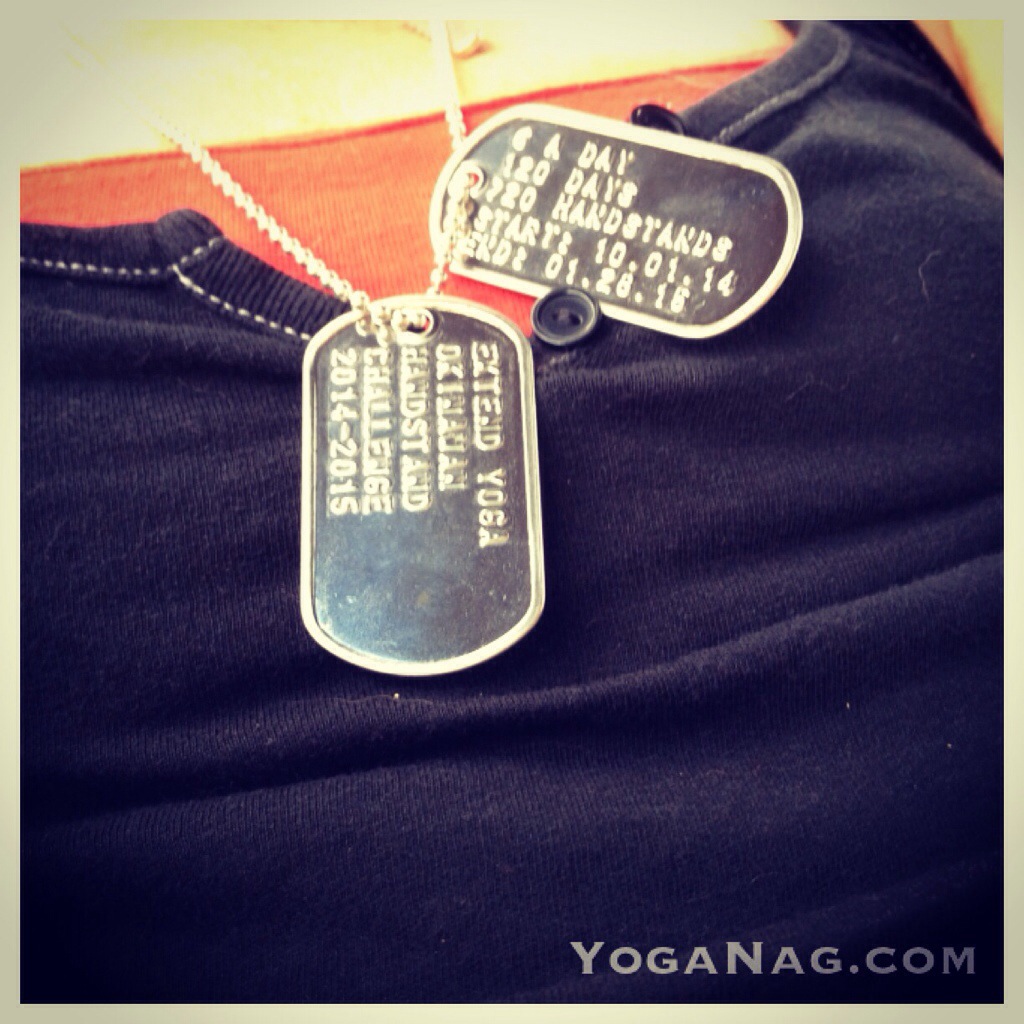 Dog tags. For the Okinawan 120-day handstand challenge. Jingle jingle they go all day. Love the reminder. Thanks to Adam for the sweet gift, to @extendYoga for hosting the challenge and, of course, to my fellow handstanders for the great group effort. I am in such good company.